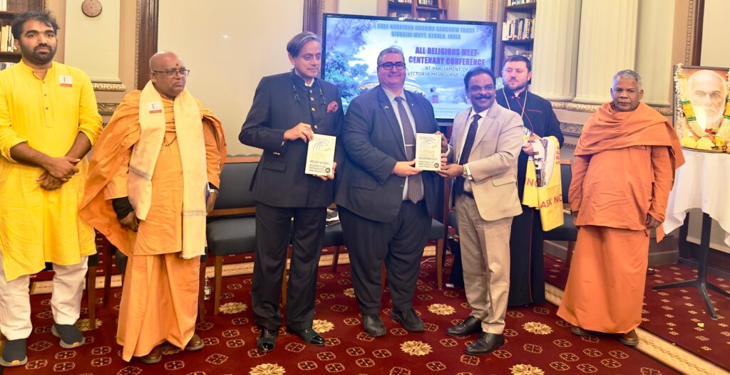 The second edition of “Harmony Unveiled – Sree Narayana Guru’s Blueprint for World Peace and Harmony”, authored jointly by Dr Sureshkumar Madhusudhanan and Dr Prakash Divakaran, was unveiled at the Parliament of Victoria, Melbourne, during the All Religions Centenary Conference.